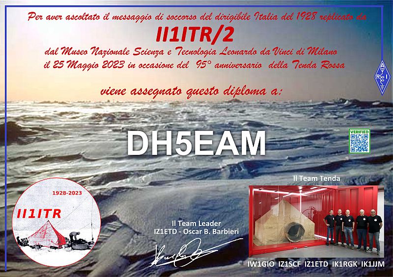 22 Stationen aus Europa hatten die Freude, diese Station unter sehr schlechten Kurzwellenbedingungen zu hören und den Empfang des Textes des Originalnotrufes aus dem Jahr 1928 zu bestätigen.